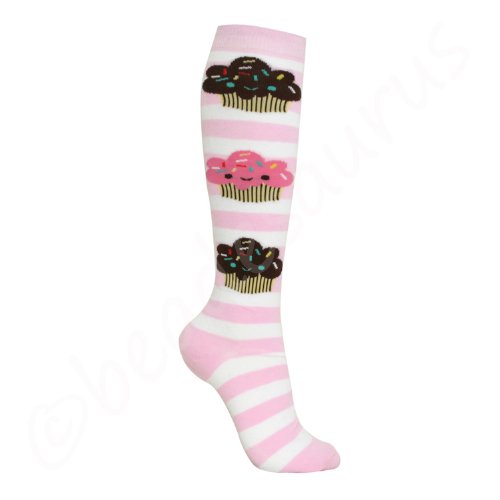 Cheap "Loungefly - Pink White CUPCAKE Brown Stripe Knee High Socks" Discount review update price today