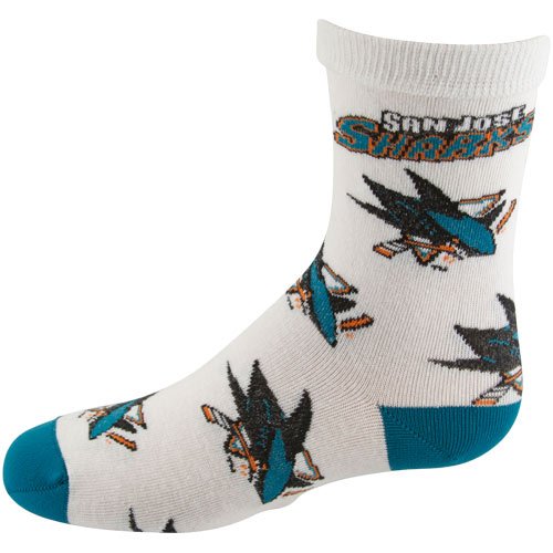 Great Price For Bare Feet for $7.95 San Jose Sharks Preschool Allover Crew Socks - White