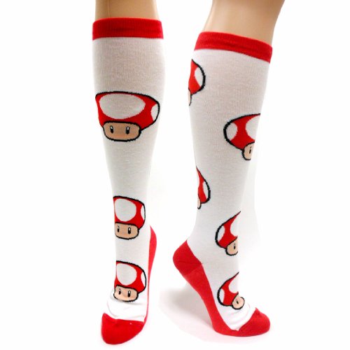 Cheap "Nintendo RED Mushroom Juniors White Knee High Socks" Discount review update price today